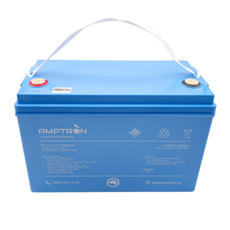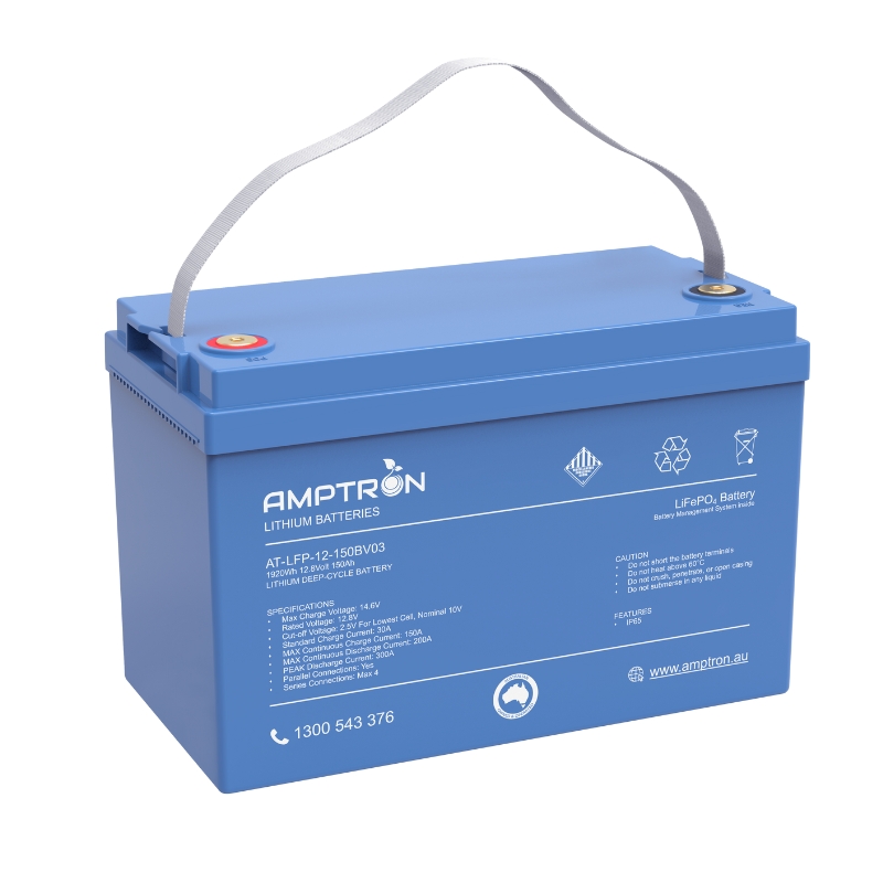 AMPTRONĀ® has refined this 12V 150Ah / 200A continuous discharge Lithium LiFePO4 Battery model to be in a small but powerful form factor. This model offers a 20% reduction in size compared to the previous model. The maximum continuous discharge current is 200A and peak discharge current 300A for 5 seconds.